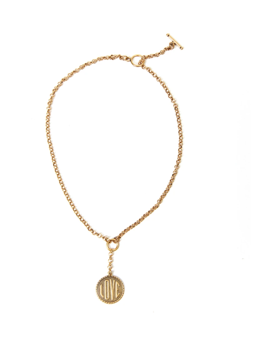 The styled photo features our Hand Pendant Necklace with the Prosperity Coral Charm, Roman Cross Pendant, and Amethyst Colored Stone Drop