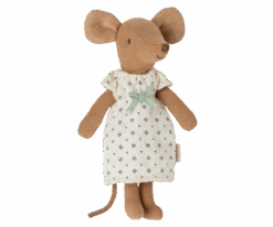 This mouse is ready for hours of play and sleeps tight in the matchbox. The clothes and bed linen come in unique prints and beautiful colours.
