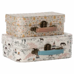 2 piece suitcase set, comes with beautiful printed fabrics. Children can use the suitcases to bring their toys on the go, or use it in the kids’ room for storage.