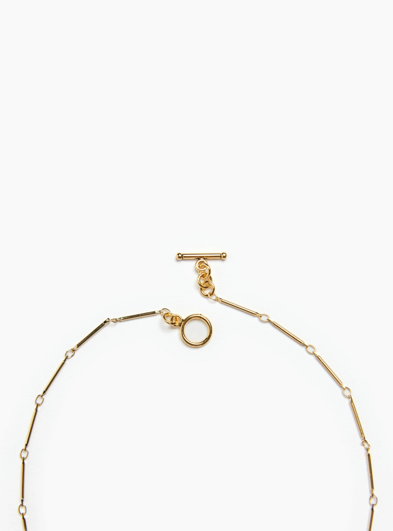 | Materials: | 14k plated gold over brass stick chain, freshwater pearl |