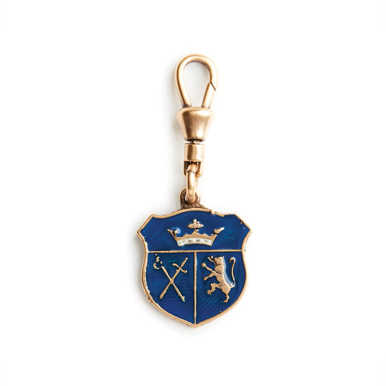 | Materials: | Flash plated antiqued gold over brass, blue enamel |