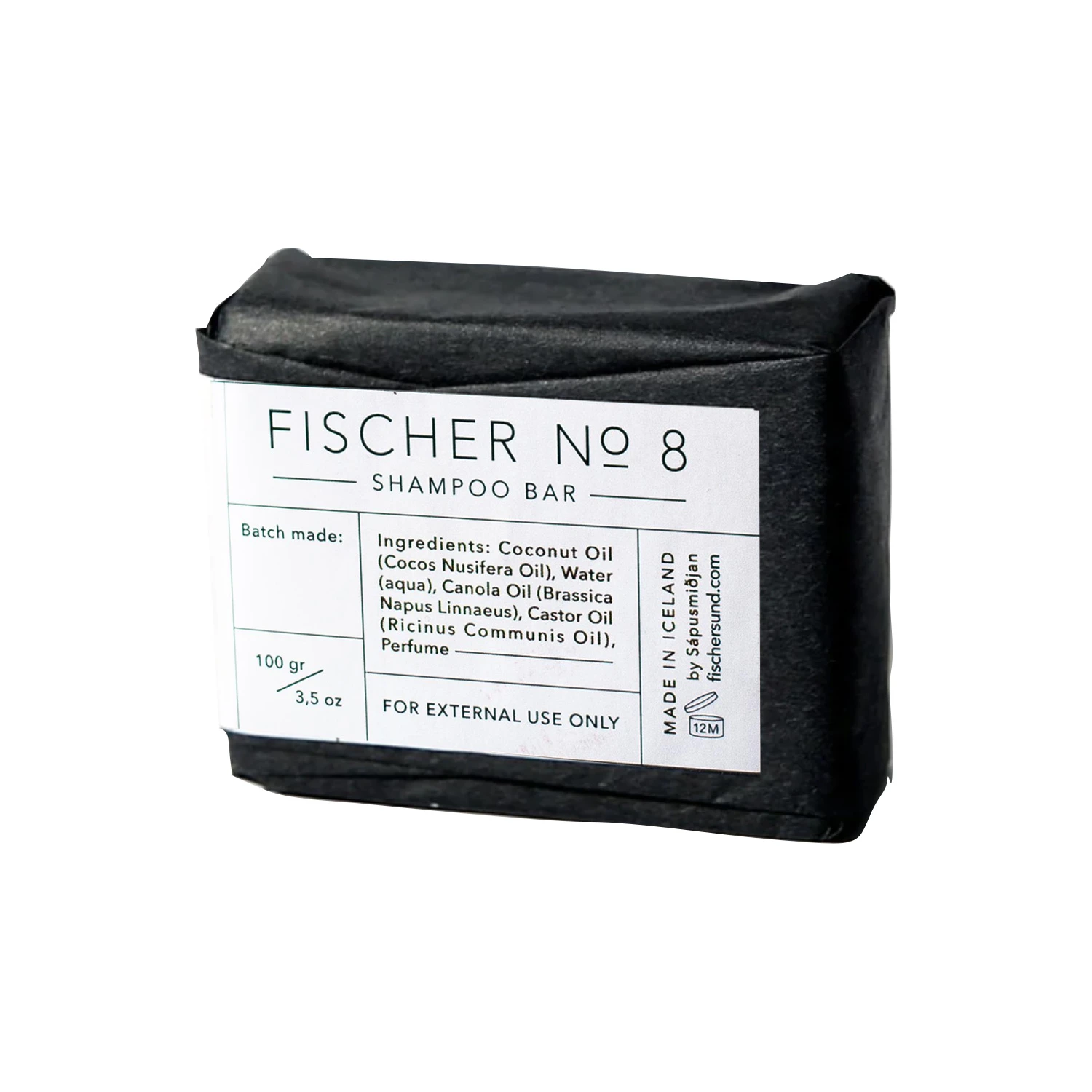 Handmade and plastic free shampoo bar made from the scented oils from Fischersund No. 8 perfume. Enjoy a fresh scent in your hair with aromas like pine, citrus and rhubarb.