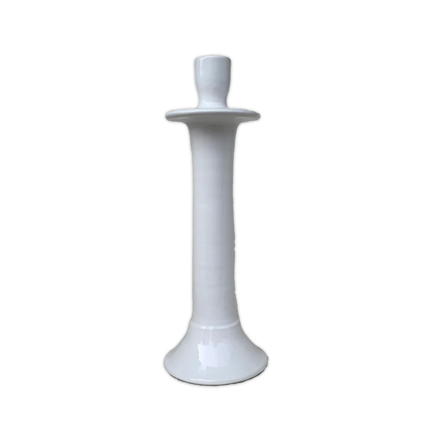 The white ceramic candlestick gleams with a lustrous white glaze, radiating an ethereal elegance. Standing tall and slender, it boasts a classic design, enhanced by four delicate bridges seamlessly merging with its body.