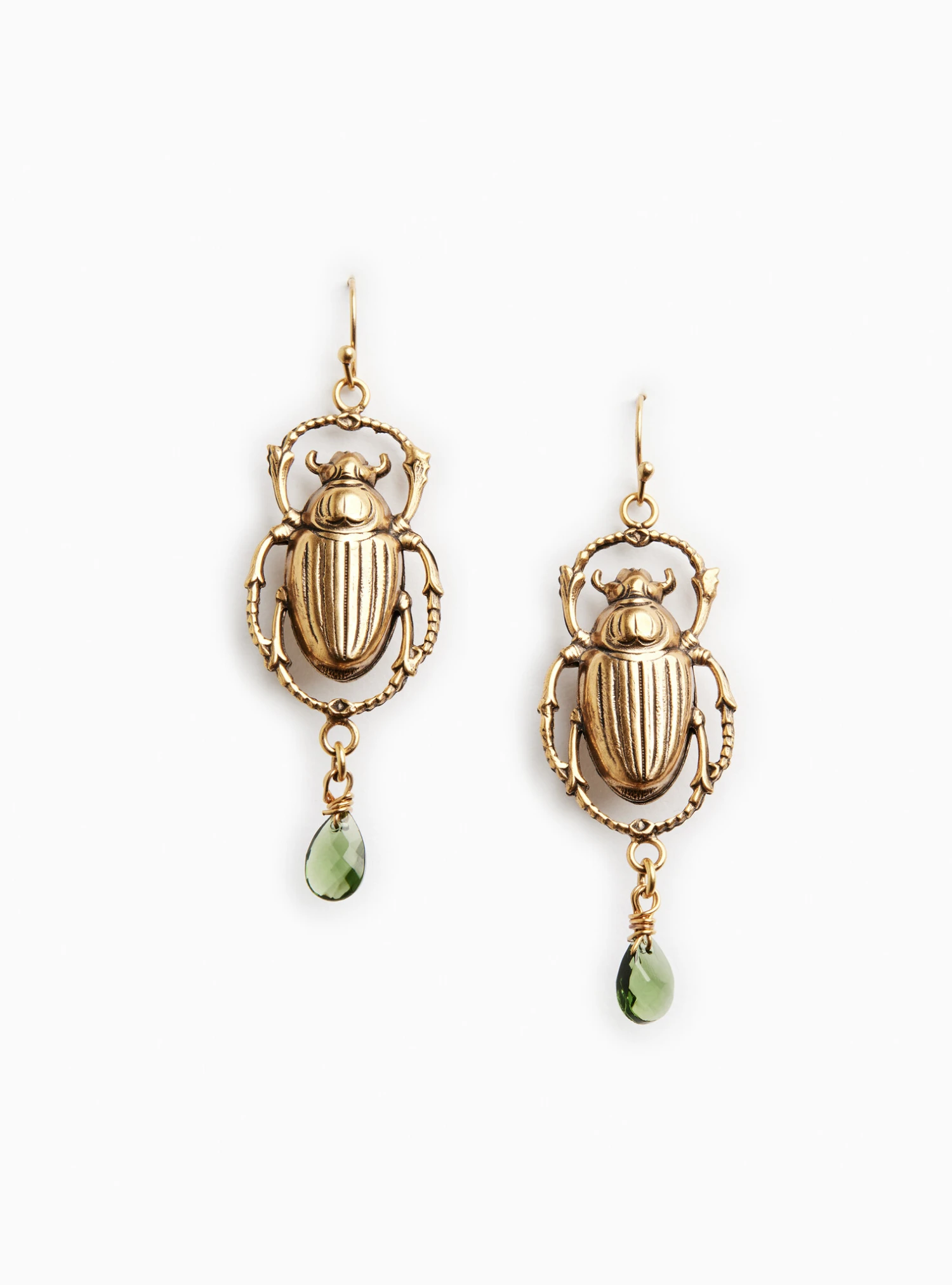 | Materials: | Flash plated antiqued gold over brass, emerald glass stone |