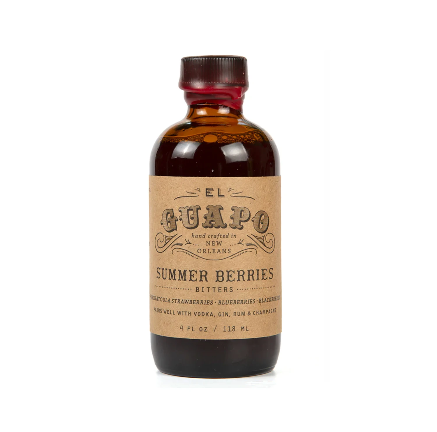Created using fresh Ponchatoula strawberries and locally foraged berries. Well balanced with notes of clove, cinnamon and allspice. 4oz.