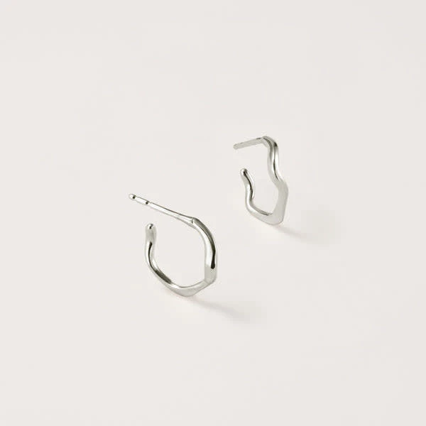 An innovative and new take on the classic hoop earring. Inspired by island time and the waves of the ocean. Approximately .60″ around. Available in Sterling Silver. Post and Back Closure. Handmade in NYC.