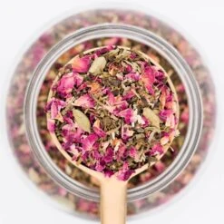 One side has a beautiful botanical the reverse is scattered with rose petals & toffee.